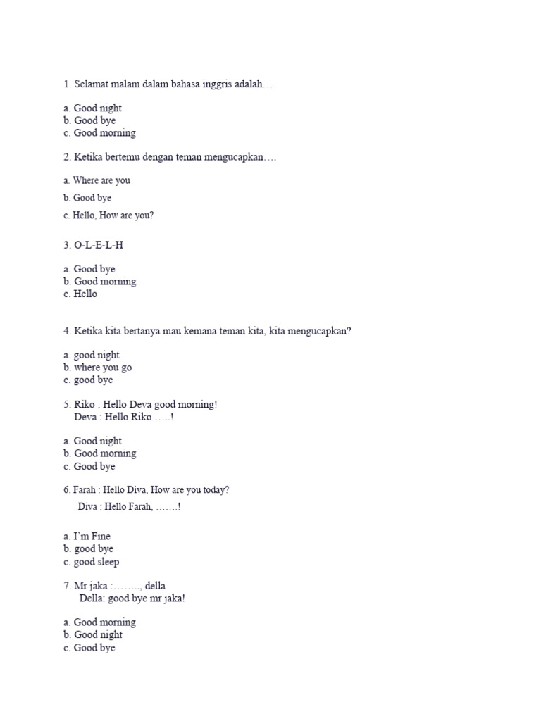 Memasuki semester kedua di kelas satu Sekolah Dasar (SD), anak-anak akan melanjutkan petualangan mereka dalam mempelajari bahasa Inggris. Di tahap ini, fokus pembelajaran biasanya bergeser dari pengenalan dasar kosakata dan frasa sederhana ke pemahaman dan penggunaan yang sedikit lebih kompleks. Orang tua dan guru memiliki peran penting dalam mendukung proses belajar ini agar menyenangkan dan efektif. Artikel ini akan membahas berbagai contoh soal bahasa Inggris untuk kelas 1 SD semester 2, lengkap dengan penjelasan dan tips agar anak dapat memahaminya dengan baik. Kita akan mencoba mencakup berbagai topik yang umumnya diajarkan pada semester kedua, mulai dari pengenalan warna, angka, benda-benda di sekitar, anggota keluarga, hingga aktivitas sehari-hari.