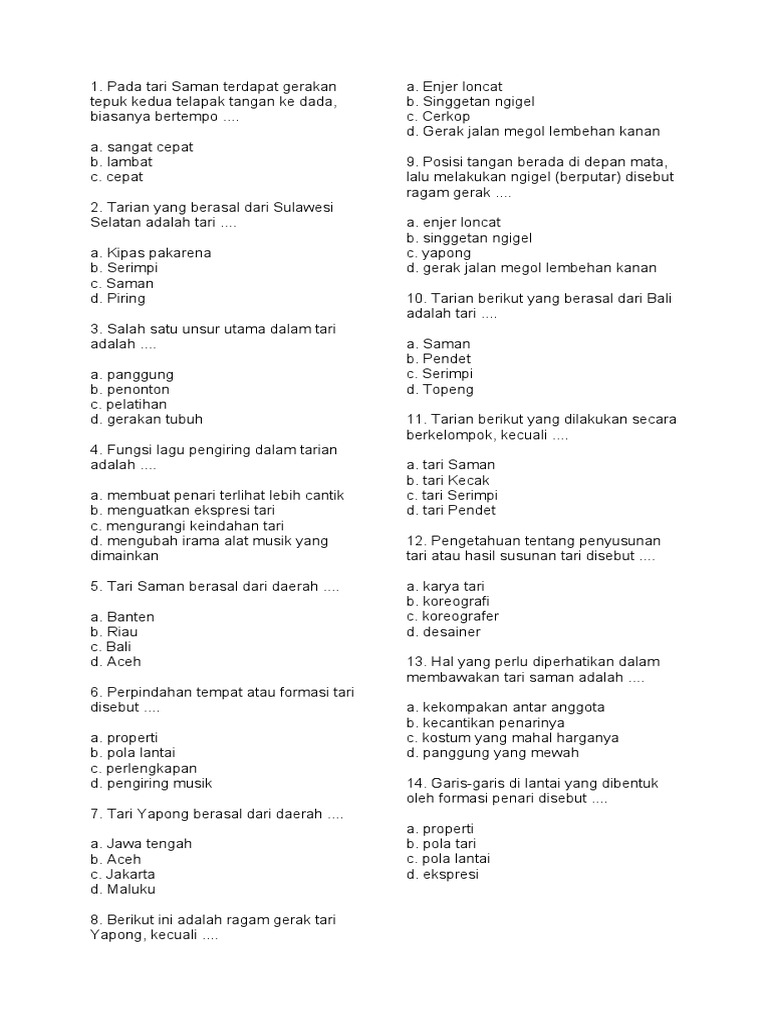 Seni Budaya dan Prakarya (SBdP) merupakan mata pelajaran yang bertujuan untuk mengembangkan kreativitas, kepekaan estetis, dan apresiasi terhadap seni dan budaya Indonesia. Di kelas 4, tema 1 biasanya berfokus pada pengenalan berbagai unsur seni rupa dan penerapannya dalam karya sederhana. Artikel ini akan menyajikan contoh soal SBdP kelas 4 tema 1 beserta kunci jawaban dan pembahasan mendalam, yang dapat digunakan sebagai bahan belajar dan latihan bagi siswa. Contoh soal ini mencakup berbagai aspek, mulai dari pengenalan unsur seni rupa, teknik menggambar, hingga apresiasi terhadap karya seni.